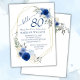 Petite fille chic bleu marine fleurs 80e anniversaire invitations avec cadre or pour elle dans jolies fleurs bleues.
