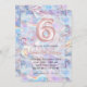 Girly Holographic Marble Swirl 6ème anniversaire Invitation