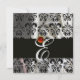 INVITATION GLACE NOIRE SOIE DAMASSÉE MONOGRAMME ROUGE RUBIS