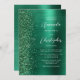 Le bord gauche de cette élégante faire-part de mariage moderne est orné d'une bordure en faux parties scintillant vert émeraude. Le texte personnalisable combine écriture blanche, copperplate et polices italiques sur un arrière - plan en métal brossé vert émeraude. L'envers offre de l'espace pour les détails mariages sur un arrière - plan en métal brossé vert émeraude, ainsi qu'un code QR que les clients peuvent scanner pour visiter votre site Web et RSVP, ce qui permet d'économiser le coût d'impression et d'envoi de cartes RSVP séparées.