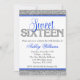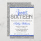 Invitation Glam Faux Parties scintillant Silver Blue Sweet 16