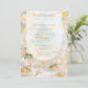 Designed especially for bridal shower invitations, this design communicates the event in an elegant and visually appealing way, reflecting a carefully curated and romantic style. The texts and back of the card are in gold and yellow tones, creating a cohesive and sophisticated look that complements the main illustration. Its ornamental and vintage style makes it perfect for daytime events, outdoor brunches, or intimate celebrations where elegance and delicacy are essential.