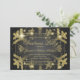 Soirée de Noël / Fête de Noël / Fête d'hiver Invitation modèle avec flocon de neige de parties scintillant festive, étincelles & lumières design en Or. Idéal pour les fêtes de diner, les bals et galas d'hiver, cravate noire d'entreprise / événements et fêtes de bureau.