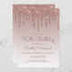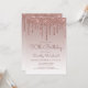 Cette invitation branchée à 90ème anniversaire présente une bordure brillante rose or faux parties scintillant et ombre arrière - plan. Les mots "90th Birthday" et le nom de l'invité d'honneur apparaissent dans un script décontracté d'écriture rose foncé, le reste du texte personnalisable dans la police sans serif. Le même design rose de parties scintillant d'or goutte apparaît sur le côté inverse. Modifiez facilement le texte pour n'importe quel anniversaire d'âge.