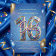 Invitation Glam Royal Blue Gold Balloons Sweet 16 Birthday