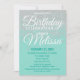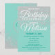 Parties scintillant brillante, chic et élégante imitation blanche brillante sur un arrière - plan vert turquoise, invitations de fête d'anniversaire. Ce design classique et sophistiqué est parfait pour un particulier d'anniversaire classe, élégant et branché. Personnalisez avec votre propre message sur le devant et customisez le monogramme sur le dos. Toutes les images