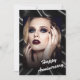 Celebrate love in striking style with this modern black and white anniversary flat card. Featuring an artistic black leather pattern that creates a dramatic background, this design perfectly highlights the elegant portrait and bold “Happy Anniversary” message on the front. The back continues the sleek aesthetic with a heartfelt message set against the same abstract backdrop, tying the look together beautifully.