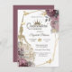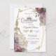 Gold glitter tiara, dress, butterflies, and blush roses on a white background. Invite guests to join you in celebrating this milestone with a design that reflects the magic and joy of your quinceañera.