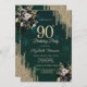 Invitation Glitter Drips Black Roses Green 90th Birthday