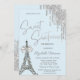 Invitation Glitter Drips Eiffel Tower Bow Blue Sweet 16