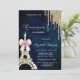 Invitation Glitter Drips,Eiffel Tower Bow Navy Blue