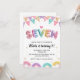 Invitation Glitter SEVEN Girly Rainbow Sequin 7th Birthday