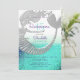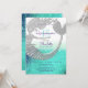 Paillettes, unique, adorable, sous la mer, bleu sarcelle et sirène argentée Quinceanera invitation d'anniversaire 15 ans.