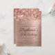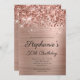 Créez pour elle votre propre invitation à fêter un anniversaire de jalon élégant. Cet échantillon est mis en place pour un 50ème anniversaire, mais cela peut être customisé. Le haut de l'invitation présente des graphiques décoratifs en parties scintillant or rose brillant sur un blush rose faux et un papier sombre en or rose. Les scintillants de luxe, la brillance et la parties scintillant seront créés avec des éléments artistiques qui s'impriment comme une photo. Vous pouvez customiser l'élégante calligraphie, les styles et les couleurs des polices.