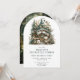Une invitation magique à l'anniversaire d'un petit garçon ou d'une petite fille sur le thème de la forêt enchantée, avec un gnome de forêt enchanté et des animaux de bois sur une invitation stock de carte de forme voûtée. Personnaliser pour tout enfant d'âge. Disponible en version imprimée, en téléchargement numérique à envoyer sur votre téléphone, ou les deux.