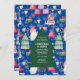 Rejoignez un Gnome de Noël pour le dîner pendant la période des fêtes. L'invitation comporte un motif arrière - plan bleu avec des gnomes, des cadeaux, des saints, des sucres de canne, des arbres de Noël et un sac Père Noël. Personnalisez les détails sur le grand arbre vert au centre de l'invitation.