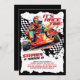 Invitation à la fête d'anniversaire du Go Kart moderne et tendance. Le design comporte un script de typographie ''It's Race Time'' en lettres rouges, une illustration colorée de kart rider, et à damiers drapeau motif sur un arrière - plan blanc. Personnalisez avec un nom, l'âge et les détails de la fête dans les lettres de la capitale tendance. Convient à tout âge.