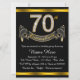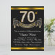 Elégant numéro or et diamant et bannière noir et or 70ème anniversaire invitation fête. Cette belle invitation de fête de 70ème anniversaire en noir et or est facilement customisée pour votre événement. Ce design frappant fonctionne bien pour un homme ou une femme.