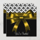 Elégante Fleur de Lis noir et blanc avec l'invitation de la fête design arc or brillant. Ce design modèle fonctionne bien comme une invitation à une fête d'anniversaire, cocktail, fête de vacances, fête d'entreprise, cravate noire formelle, bal de promo, fête de retraite, fête de remise des diplômes, fête de bachelorette, fête de fiançailles, mariage, fête de réveillon du Nouvel An, et toute autre occasion spéciale. Ajoutez vos détails à l'avant et à l'arrière en choisissant simplement le bouton orange "Customisez-le !" pour commencer à ajouter vos détails d'événement, le style de police, la taille et la couleur de police et le libellé. Invitations à la soirée Gold fleur de lis. Veuillez noter que tous les modèles d'invitation que vous trouverez sur Zazzle sont des graphiques imprimés sur papier plat stock sans bijoux, arcs, surélevés, gaufrés, ou pièces ou pièces ajoutées.