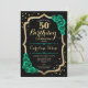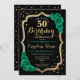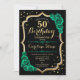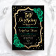 Invitation à la fête du 50e anniversaire. Design vert émeraude floral élégant avec de l'or de parties scintillant, des roses et des caractères de script. Idéal pour une célébration anniversaire féminine élégante. Peut être customisé pour n'importe quel âge ! Invitations Zazzle imprimées ou téléchargement instantané modèle imprimable numérique.