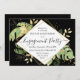Cette élégante invitation à la fête tropicale présente un feuillage vert exotique aux accents dorés sur un arrière - plan noir. Un cadre doré géométrique moderne met en évidence le texte noir. Les plaquettes d'or accentuent le design botanique et apporte un peu de fantaisie sophistiquée à l'invitation. Cet invitation d'oasis insulaire est parfait pour toute soirée tropicale ou de fiançailles de jardin.
