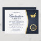 Célébrez votre diplôme d'école de pharmacie avec style avec cette invitation moderne de logo bleu et or mortier. Le design épuré présente un logo mortier et pilon dans une belle finition or métallique sur un arrière - plan bleu marine classique. Personnalisez l'invitation avec vos propres détails à l'aide de l'outil de design de Zazzle, en le rendant unique pour vous et votre événement spécial. Le téléchargement numérique est également disponible, vous permettant de l'imprimer facilement à la maison ou de le partager avec vos amis et votre famille sur les médias sociaux ou par courriel.