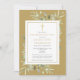 Une élégante célébration personnalisée de la vie souvenir invitation photo funéraire avec aquarelle botanique feuillage verdoyant sur un arrière - plan or. Conçu par Thisisnotme©