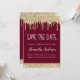 Marsala de Bourgogne et Parties scintillant à gouttes d'or - 16 Fête d'anniversaire de la fille Enregistrer la date Invitation. Cette invitation est parfaite pour la Soirée du 16ème anniversaire Elégante et Moderne Sparkle Parties scintillant Sweet qui cherche à célébrer dans le style branché.