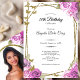 This elegant pink and gold 18th birthday debut invitation has pink roses and gold butterflies with a personalizable template to create your own message. Add your photo on the back to personalize the image. The invitation template is customizable in the listing editor and is also available as a digital download that's printable after you personalize it. This is a modern, blingy design that's still traditional enough for an elegant milestone birthday.