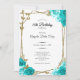 Invitation Gold Butterflies Teal Roses 18th Debut Birthday