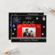 Invitation chic Black et Gold avec décorations de Noël en soie rouge et numéro de parties scintillant or unique.
