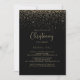 Ce script de calligraphie de confetti en or invite à baptiser est parfait pour un baptême ou baptême de bébé rustique. Le design simple et élégant présente des confettis dorés brillants associés à une typographie stylisée.