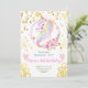 Invitation Gold Confetti Rainbow Unicorn visage Anniversaire