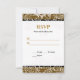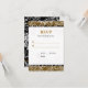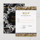 Ajoutez cette carte RSVP Gold et Black Elegant Wedding à votre forfait Faire-part de mariage. Conçu avec un design graphique or sur un arrière - plan noir et blanc. Pour personnaliser, il vous suffit d'ajouter vos informations de réponse par date et les prénoms de la mariée et de la mariée dans notre modèle facile, en remplaçant l'exemple de texte.