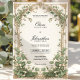 Offrez à votre famille et à vos amis la meilleure première impression de votre journée spéciale avec ce modèle d'inspiration Art Nouveau. Ce design aux arcades dorées, parées d'une végétation luxuriante d'eucalyptus et de délicats motifs de fleurs blanches, exhale l'élégance intemporelle, ce qui en fait un lieu de séjour idéal pour les couples à la recherche d'un mélange d'élégance vintage et moderne. Ce design est idéal pour les mariages de jardin, les cérémonies d'inspiration vintage ou les soirées élégantes. N'hésitez pas à le personnaliser et à créer un souvenir mémorable pour votre journée spéciale.