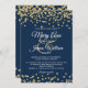 Gold Faux Parties scintillant Confetti sur Navy Blue - Elégant mariage "Save The Date" Conception de l'invitation. Idéal pour les mariages glamour et sophistiqués ! Un choix de faire-part de mariage parfait pour un événement du Nouvel An !