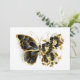 Or flower butterfly with black jewelry orchid, decorated with gold leaves on white background.