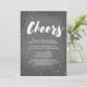 Invitation de la veille de l'année tendance et moderne avec confettis d'or et "Cheers" écrit dans un script de brosse élégant sur un arrière - plan gris texturé.