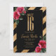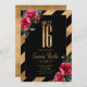 Célébrez dans le style avec ce modèle d'invitation unique en Sweet sixteen avec une grande feuille d'or imitation 'Sweet 16'. L'arrière - plan noir solide est bordé de bandes diagonales dans le même effet de feuille d'or avec des roses rouges luxuriantes dans les coins opposés. Si vous le préférez, le "Sweet 16" attrayant est facultatif et peut être supprimé pour utiliser ce modèle à d'autres occasions. Utilisez le modèle fourni pour customiser les détails de votre événement. Recherchez ID757 pour voir d'autres produits et options de couleur pour cette conception.