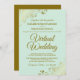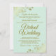 Ce n'est pas parce que vous avez été forcé de déplacer votre mariage vers une cérémonie virtuelle que vous ne pouvez pas envoyer de belles invitations. Cet élégant invitation présente des lettres en or fantaisie sur un arrière - plan vert menthe pâle de couleur néonatale avec un fil de lin floral dentelle ou des boucles et tourbillons dans les coins. Un moyen parfait d'invitation vos amis et votre famille pour partager votre journée spéciale, même s'ils ne peuvent pas être là en personne.