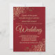 Cette invitation de mariage simple mais élégante présente des lettres en or sur un arrière - plan rouge marbré. Le design est sobre, mais les coins sont ornés d'un faux fil floral doré orné de boucles et de frites. Le texte est formel et traditionnel mais le design chic rend cette invitation appropriée pour tout mariage.