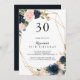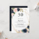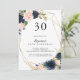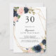 Cette invitation de fête de 30e anniversaire aux fleurs d'hiver géométriques dorées est parfaite pour une fête d'anniversaire moderne. Le design présente de belles peintes à la main bleu foncé, bleu, bleu marine, rose, rousse, fleurs d'or et feuillage vert, entassés dans d'élégants bouquets.