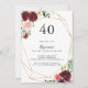 Cette invitation à la fête de 40e anniversaire géométrique et dorée est parfaite pour une simple fête d'anniversaire. Le design peint à la main est composé de feuilles verts, de rose éblouissant, de rougeur, de violet, de rouge, de blanc et de roses bordeaux éblouissants, de pivoines soigneusement disposées en petits bouquets mignons, décorant un cadre géométrique doré.