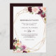 Cette invitation à la fête du 50e anniversaire, géométrique et dorée, est parfaite pour une fête d'anniversaire moderne. Le design se compose d'élégants bouquets de fleurs dessinés à la main dans le vert, le blush, le violet, le rouge et le bordeaux, ornant des cadres géométriques dorés, classe inspirante et beauté.