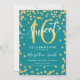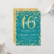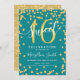 Elégante 16ème anniversaire de la Parties scintillant d'or Confetti sur modèle d'invitation Turquoise.