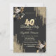 Invitation Gold Glitter Drips Black Roses Dark 40th Birthday