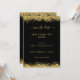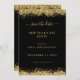 Elegant Gold Glitter Script Black New Years Eve Party Save the Date. Available digitally and printed. A touch of sparkle with faux glitter gold border is on each side top and bottom on a black background, and the words “save the date ” are in a stylish script with swashes. Keep the spaces each end of this text to maintain the swashes. Easily personalise the text to your own details. You can also change the text and background colors via the customise further option if you wish.