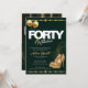Elégante et luxueuse invitation à 40ème anniversaire vert foncé et or, parfait pour une célébration glamour et sophistiquée. Doté d'une parties scintillant étincelante, de ballons et de talons hauts, ce design respire le style et le raffinement. Idéal pour une fabuleuse fête entre amis et en famille, cette invitation est entièrement personnalisable et facile à éditer avec l'outil de conception - nom, police et détails de l'événement pour en faire le vôtre unique. Ajoutez votre propre photo (pour un meilleur résultat en format carré).