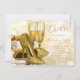 Invitation de Noël d'entreprise de Noël or avec élégantes verres de champagne d'or, parties scintillant d'or chaussures talon haute et ruban d'or enveloppé cadeaux sur un arrière - plan de bokeh or magnifique. Cette élégante invitation de Noël d'entreprise en or est facilement customisée pour votre événement en ajoutant simplement vos détails dans le style de police et la couleur de votre choix.