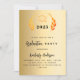 Un arrière - plan à l'allure d'or. Une couronne de laurier classique et une casquette de graduation. Personnalisez et ajoutez l'année, le nom et les détails. Texte noir.
